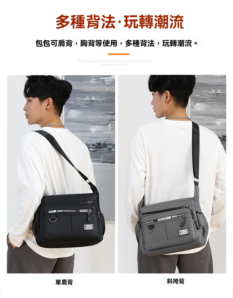 【潮流男士必備】大容量單肩男包,防水耐磨多口袋商務休閑男士斜挎包!